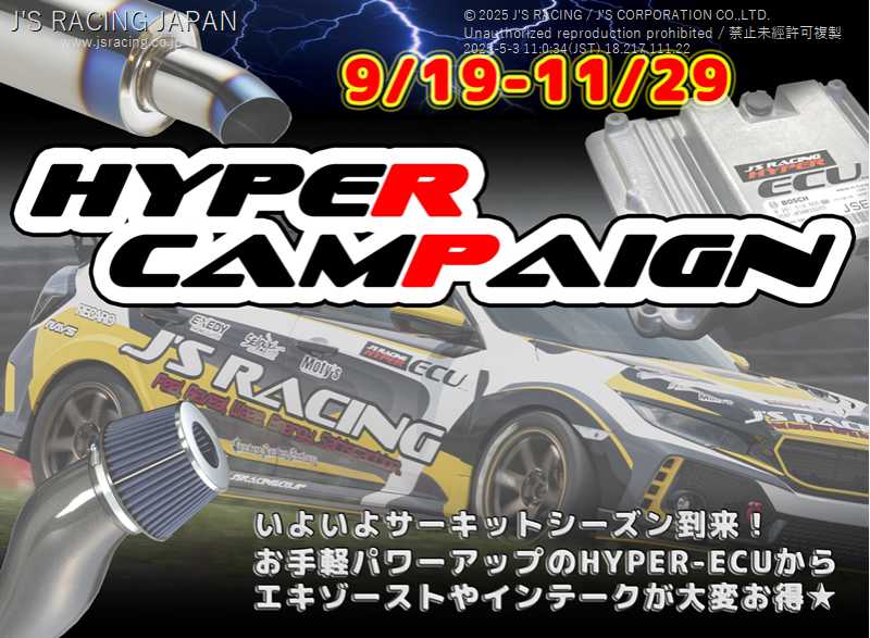 9月19日(土)〜 11月29日(日)までの間、J’S RACINGファクトリーとWEBショッピングにて「HYPERキャンペーン」を開催します!!!
