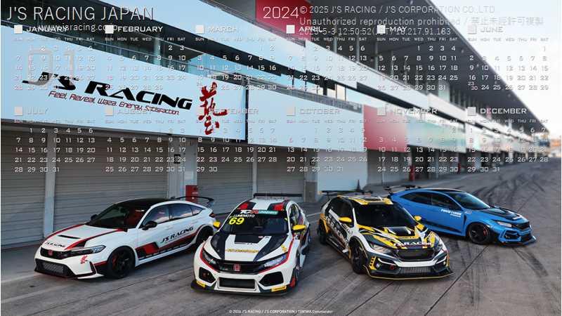 つきましては、サービスの一環として以下のページより「2024 J'S RACING OFFICIAL CALENDAR」を無料にて配布しております。