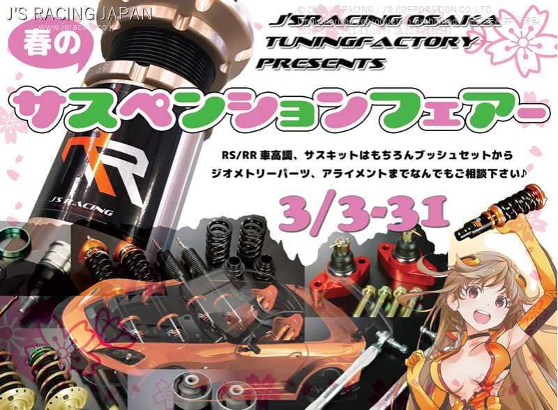 J'S RACING大阪チューニングファクトリーにて「春のサスペンションフェア」開催!! 3/3(土)〜3/31(土)
