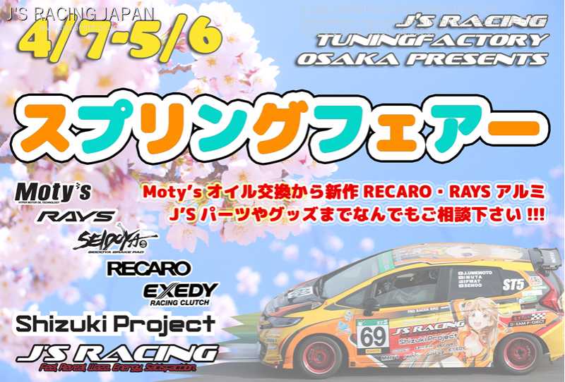 4/7〜5/6までJ'S RACING FACTORY OSAKA本店にて今年も春のフェアーが開催決定!!!J'SRACING製品を中心に通常よりも大特価!!!