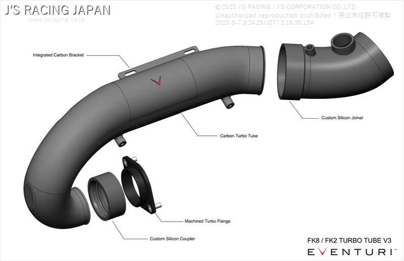 アップデート前のエアインテークシステムには(EV-K8-MAF:FK8 EVENTURI Carbon MAF Tube with Silicone Joint Hose)をご使用ください。