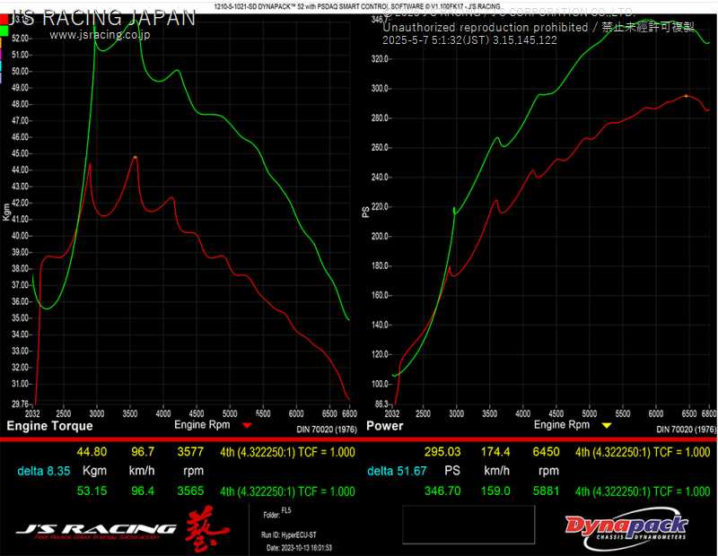 このHYPER-ECUの特性はFL5の長所を生かし、吸気温度上昇やハイブーストでの排圧の上昇、及び排気温度の上昇によるパワーダウンを防ぐセッティングを施していますので安定した出力をキープできるような扱いやすい仕様となっております。