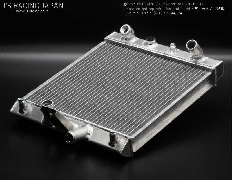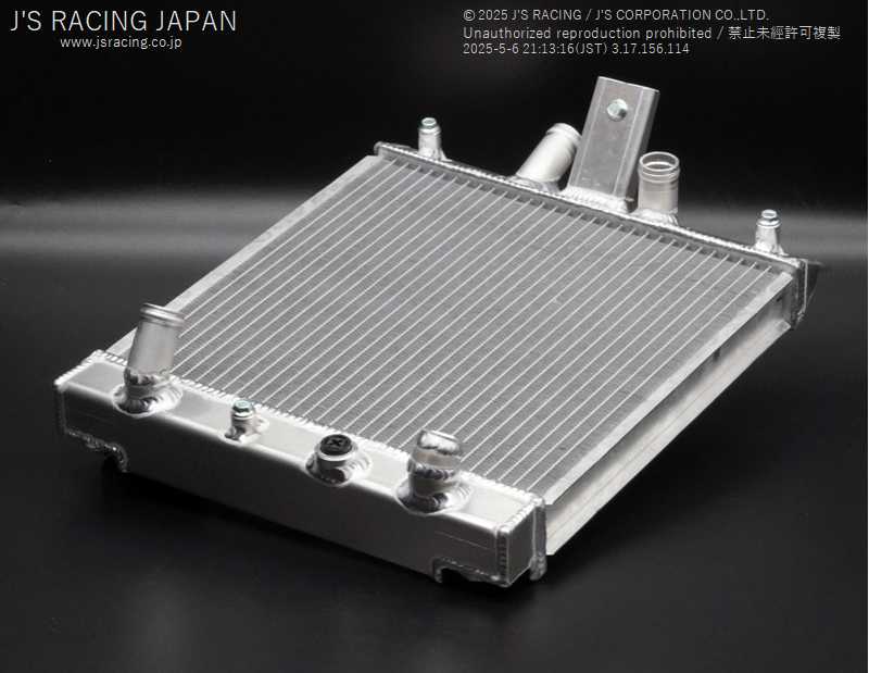純正ラジエーターよりも厚く設計されておりますので装着後は干渉がないか点検を行って下さい。車輛の個体差で干渉が発生する場合もございますのでその際は必ず干渉しないよう調整・加工を行って下さい。