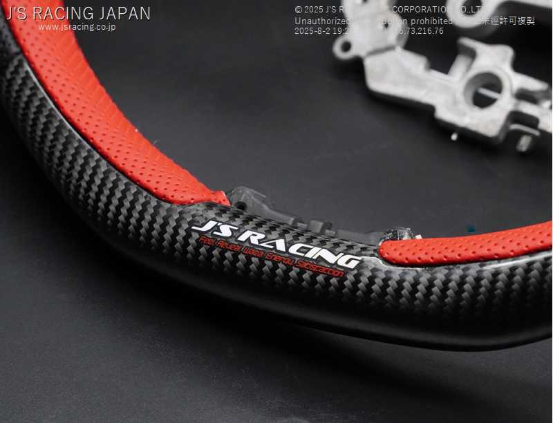 グリップ部分の素材は、レザーの中でも厳選されたイタリア製高級皮革。レッドステッチをアクセントとし、純正の本革ステアリング同等の高いクオリティを誇ります。
